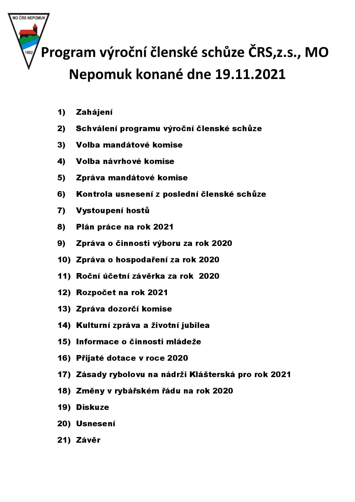 Po skončení výroční členské schůze proběhne druhý termín výdeje povolenek a platby členských příspěvků.